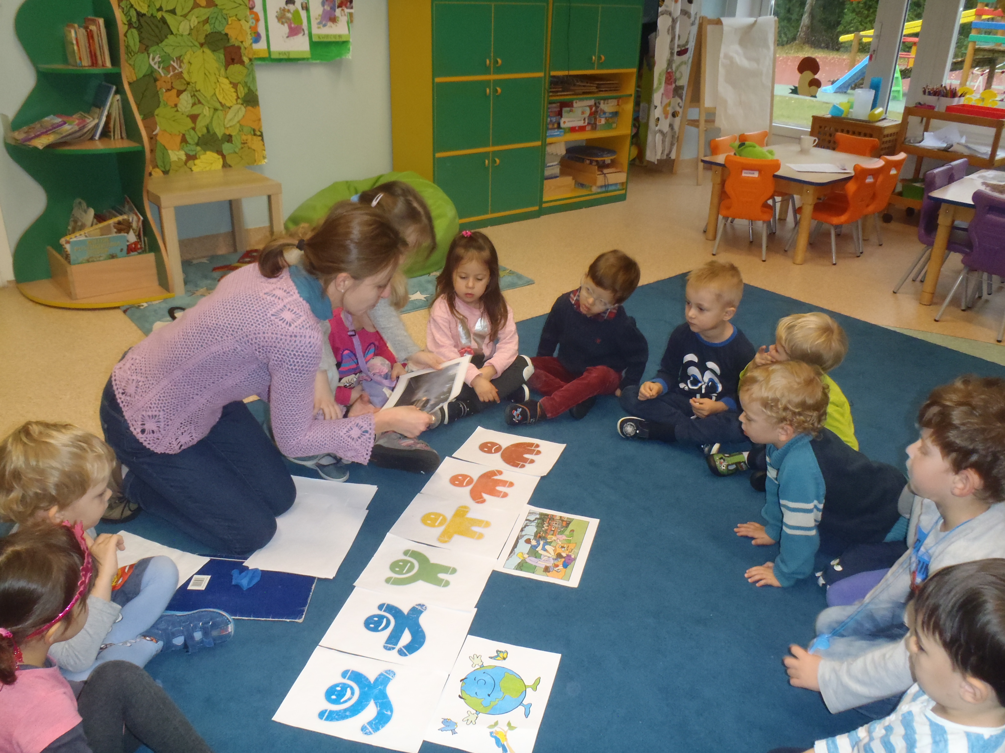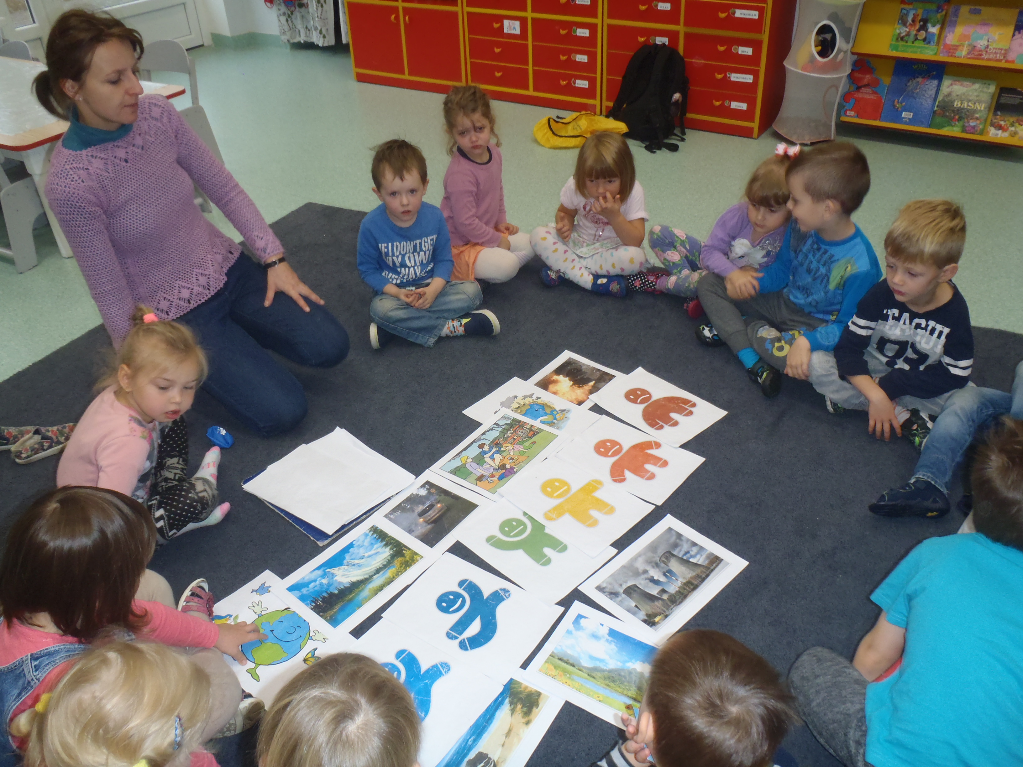 Na zajęciach omówiono temat powietrza oraz jego zanieczyszczeń. Dzieciom został uświadomione, że powietrze jest wszechobecne i niezbędne do życia, a jego czystość jest źródłem zdrowia. Dowiedziały się co to jest powietrze jak i gdzie powstają zanieczyszczenia powietrza i w jaki sposób można im zapobiegać. Poznały również znaczenie kolorowych atmoludków obrazujących stan jakości powietrza w województwie pomorskim. Zajęcia przeprowadzono w formie pogadanki aktywizującej z wykorzystaniem zabaw dydaktycznych :„Zatkany nos”, „Dmuchanie balonu”, „Dopasowanie Atmoludka” oraz „Naśladowanie atmoludka” . Na koniec dzieci pokolorowąły Atmoludki , a w nagrodę otrzymały kolorowe naklejki z postaciami atmoludków. Poniżej zdjęcia z zajęć.